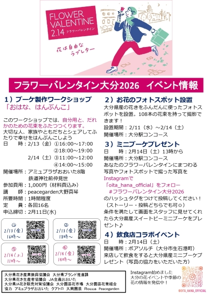 条件を満たして画面をスタッフに見せてくれたら大分県産スイートピーミニブーケをプレゼント♪
