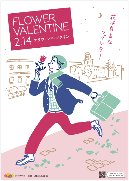 今年のキービジュアルも、昨年同様イラストレーター・MIMOEさんの素敵かわいいイラストになります。1月下旬頃から、全国の花店にポスターが貼られます。ぜひ見つけてくださいね♪